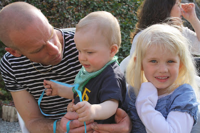 Ture har namnsdag och det firades med ett besök på öppna förskolan i Sätra. Det var premiär för oss, en mycket lyckad sådan. Ture älskade alla nya saker att leka med, satt först mest för sig själv och vände på prylar. Efter ett tag knatade han iväg på upptäcktsresa, tjoade med de andra barnen och någon vuxen här och där. Det var ganska kul att se honom sitta långt långt ifrån mig utan att bli stressad. Han vände sig om en gång och fick snabbt ögonkontakt med mig, sen fortsatte han att leka. Vid ett tillfälle ville han leka med den leksak som pojken Sixten hade valt. Då sa jag, "Nej Ture, den är Sixtens". Då gav han tillbaka den till honom och började leka med något annat. Oj oj, de andra mammorna blev mycket imponerade. Jag hade inte hjärta att säga att det nog var en tillfällighet.